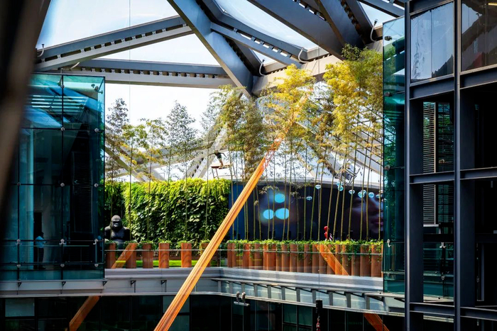 “未来花朵”正在这座艺文绿洲里和消费者共同沐浴着阳光,呼吸新鲜空气,一片 “未来之森”就在广场长成。它们在侨福芳草地具象地诠释了人、物、思考相互依存的复杂关系,预示在新的一年流转着无限的生命力与灵感。
