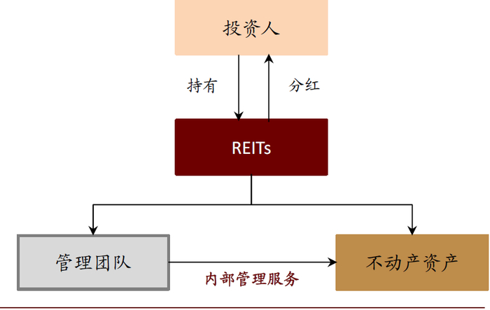 海外REITs的管理人制度分为内部和外部管理两类。外部管理模式是指REITs以公司或信托的形式作为资产持有主体,基金管理和资产管理功能由外部的第三方专业机构承担。外部管理人收取费用,管理费一般由基本费用(可能基于管理资产总规模提取)和绩效费用(基于收入或分派的提成)组成。相应的,内部管理模式是指REITs拥有不动产资产的同时拥有内部运营管理人团队,前述管理职责由内部管理团队承担。