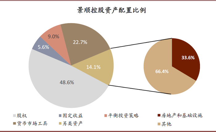 图表:景顺控股整体配置约14%的另类资产,其中房地产和基础设施是主体