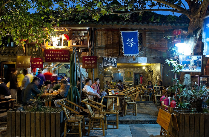 茶馆作为成都文化的载体,在新时代顽强地幸存下来并且还有了较大的发展,但成都的老城区和老街区就没有那么幸运了。在20世纪90年代以来的大拆大建运动中,成都作为一座古城已经消失了。虽然中国城市每天都在发生变化,但不可否认的是城市的面貌更加“现代化”,从林立的高楼、辉煌的广场到豪华的饭店酒楼、美国快餐连锁店、超级广告显示屏幕等,白天的城市到处是熙熙攘攘,晚上是灯红酒绿。