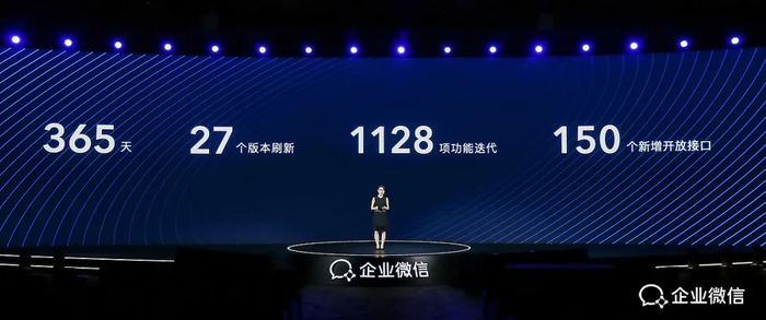 2020年一年内,企业微信一共发布了27个版本,迭代了1128项功能,和新增了150个开放接口。这个速度,超过过往3年的总和。