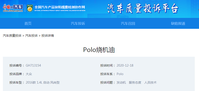 原标题:Polo烧机油情况严重 上汽大众至今未解决 来源:中国网