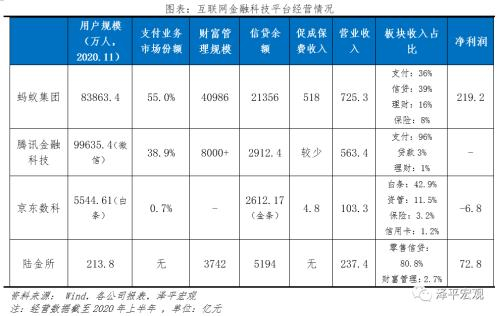 互联网平台普遍通过助贷、联合贷、赊销等模式开展借贷业务。1)蚂蚁集团、陆金所、京东金条等产品以助贷和联合贷的方式为主,该模式下互联网平台负责获客、信用评估、风控等,金融机构负责提供大部分贷款。截至2020年6月,蚂蚁促成信贷余额2.15万亿,其中表内贷款仅362亿元,占比1.68%,2020年上半年陆金所新增零售信贷284亿元,其中自有资金放款比例仅为0.7%,其余60.6%的资金来自49家银行银行、38.7%的资金来自信托计划融资。2)京东白条以赊销模式为主,该模式下,京东数科与电商合作,提供数据支持和风控等服务,针对用户使用京东白条产生的应收账款进行资产证券化。