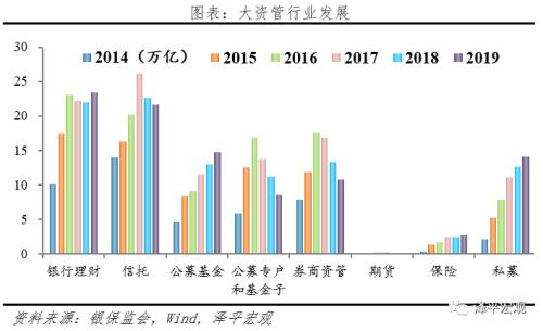 资管行业参与者包括以基金、银行理财、信托等为代表的资产管理机构。截至2019年,大资管行业存量规模约82万亿元,银行、信托、公募基金、基金专户及基金子公司、券商资管、保险资管、期货资管分别占28.5%、26.3%、18.0%、10.4%、13.2%、3.4%、0.2%。此外,还有私募基金、第三方财富管理公司等众多非持牌参与者。