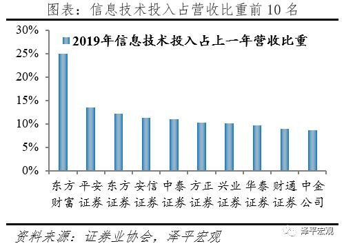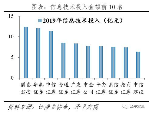 1)大型综合类券商通过自建团队、合作开发等方式,注重培育自主研发能力。国泰君安(港股02611)成立数字金融部、华泰证券成立数字化运营部、中金与腾讯成立合资技术公司,2019年,国泰君安、华泰证券、中信证券(港股06030)信息技术投入位列前三,投入规模分别为12.4亿元、12.0亿元和11.4亿元。