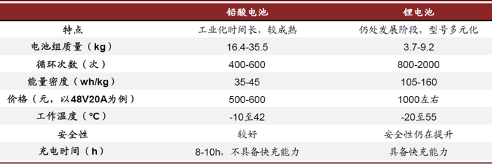 成本角度而言,车用锂电化具备全生命周期经济性。据海宏科技分享,铅酸电池的使用寿命一般2年左右,而锂电池使用相对较长。按电动自行车平均4-5年的生命周期来计算,虽然选用铅酸电池的首次购入成本低,但从全生命周期来看,如果叠加第3年更换电池成本,则铅酸电池的生命周期成本和当前锂电池的成本相差无几。同时,未来锂电池成本有继续下探的空间,因此长远来看,锂电方案更具经济性。