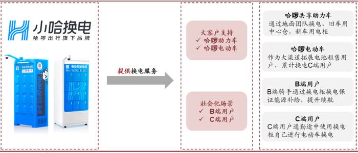 换电模式加速电动两轮车锂电化。电动两轮车锂电化大趋势下,能源服务需求庞大,换电模式应运而生。哈啰出行、宁德时代、蚂蚁集团成立合资公司,推出定位两轮电动车基础能源网络的“哈啰换电服务”——小哈换电,通过服务共享出行行业的大客户——哈啰助力车和哈啰电动车,搭建高质量、高密度网络,实现网络效应和规模效应,进而覆盖B端外卖骑手和C端个人用户。换电模式能够做到:1)解决B端用户高频次、长时间用电需求;2)具备灵活性、省时、高安全性等优势;3)方便统一换电管理,辅助政府对电动车充电的监督。换电模式的诞生和发展,将助力锂电电动自行车完善使用生态、优化用户体验,二者相辅相成、相互促进。