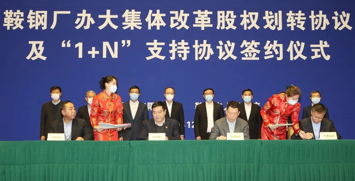 澎湃新闻(www.thepaper.cn)从钢铁央企鞍钢集团处获悉,12月23日,鞍钢集团与辽宁省鞍山市签署了《鞍钢厂办大集体改革改制企业股权划转协议》和《支持鞍钢厂办大集体改制企业发展协议》(下称“两项协议”),110多户实施重组改制的企业股权正式划转鞍山市。此举标志着鞍钢厂办大集体改革任务基本完成。