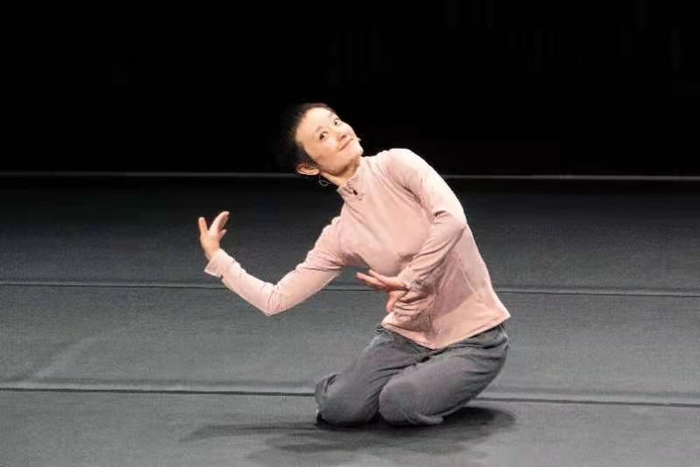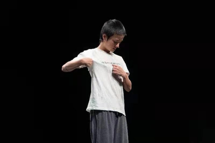 ,不知道是什么舞,每场请观众用手机看时间,她尝试在回忆中舞蹈5分钟,每一场跳的都不一样。