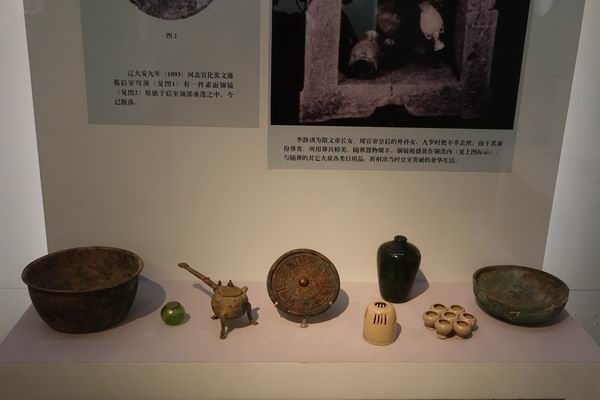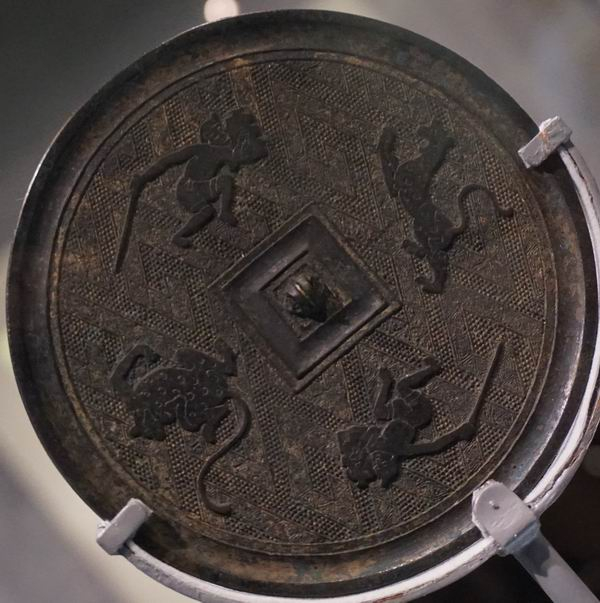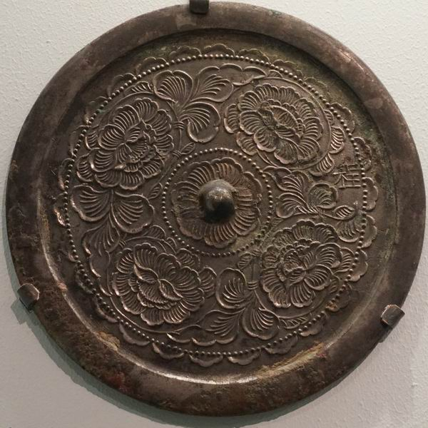 附带说明一下,在“镜里千秋”展览上还展出一些东距洛阳约130公里的三门峡出土唐镜。1957-1958年,为了配合河南三门峡市区建设,黄河库区考古队在这一地区进行了考古发掘,清理了一些唐墓,部分器物保存在国博。展出的有三门峡市区唐墓出土铜镜,如宝相花镜、对凤花叶镜、仙骑山岳镜及螺钿盘龙镜复制品。