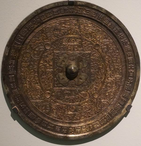 笔者将鎏金中国大宁四神博局镜的学术价值,归纳为以下三点:一是纹饰布局,一般博局镜内、外区里的纹饰中规中矩,随形就势,成为适合纹样,这面大宁镜不仅有此类纹饰,还有另外一类动物纹饰,头在内区,身体在外区,它们突破了内、外区的界限,可以说是在一种全新设计理念指导下形成的构图式样,艺术性更强。二是铭文内容,“中国大宁”的吉语铭文新颖别致,含义深远,与当代中国人产生了强烈共鸣。三是铸造工艺,镜背经过鎏金这一特殊加工工艺制作而成,使之成为特种工艺镜。基于上述三点,使得此镜成为该展览中独一无二的“明星展品”。再次回味一下2017年国博举办的“秦汉文明”展览上,将大宁镜作为压轴大戏,真是意味悠长,寓意深远。