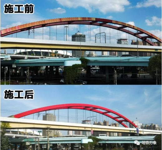 2019年11月,3号线漕溪路“彩虹桥”涂装施工