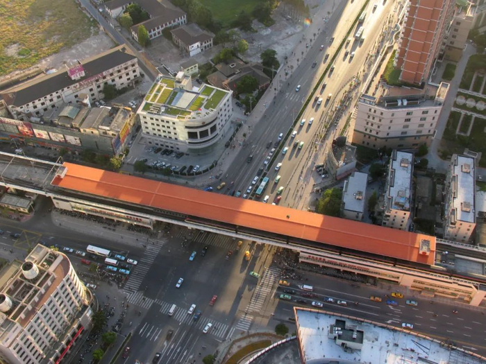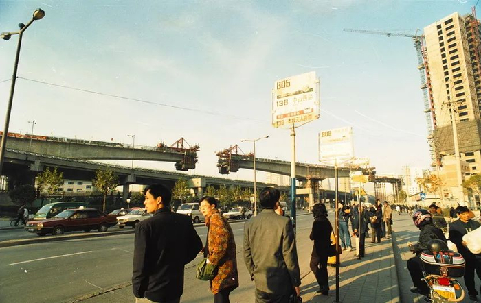 1999年,中山南路漕溪路口,正在建设中的3号线高架轨道(陆杰摄)