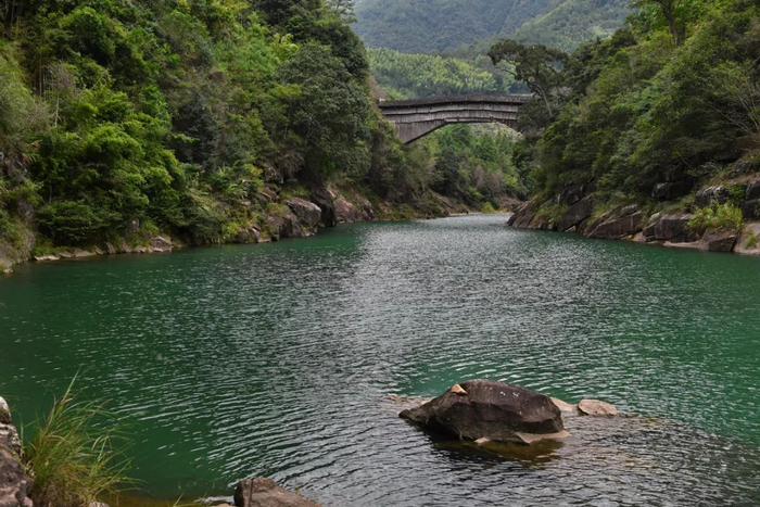 【七仙桥】位于纯池镇桃坑村,又名七天桥,始建于清代,1934年重建,拱跨16.1米,中间升起三檐歇山顶,顶棚饰有彩绘,可谓气势不凡。