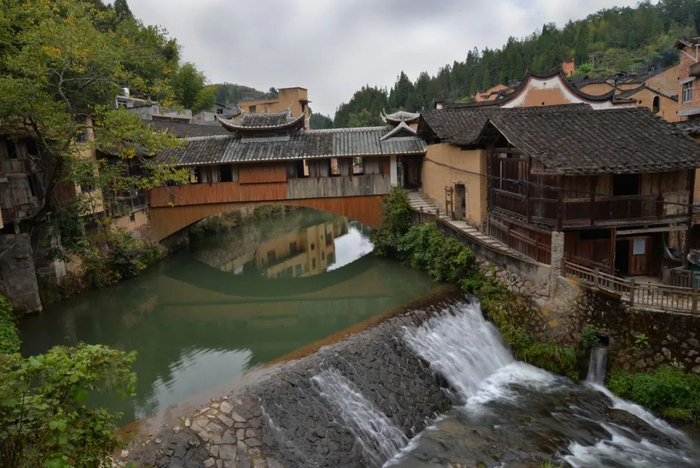 屏南是山区,山多溪多。流水滑过处,桥应运而生。廊桥像彩虹一样俊美,横跨于青山绿水,成为别具地方特色的文化瑰宝。