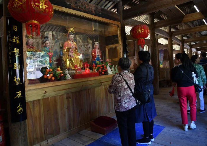 廊桥扼水口要冲,风水上说能“藏风聚气”,自然就被视为“凡间与神界的相连之处”,所以,闽浙人就在桥上的廊屋中设神龛,或者在桥头修建庙宇,供奉崇拜的神像。