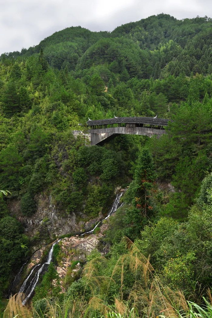 【后垅桥】位于周宁县与屏南县交界的山谷里,地处偏僻的周宁县礼门乡后垅村,廊桥建成年代不详,清康熙年间、清咸丰十一年(1861年)两次重建,现桥于1964年重建,桥长36米,宽4米,拱跨30米,离水高19米,廊屋高4米,为歇山顶抬梁式木结构,54柱13间。该桥工艺精湛,风格独特,飞架峭壁,高悬于溪谷之上,与山水奇妙融合,成为峡谷一道绚丽的风景。