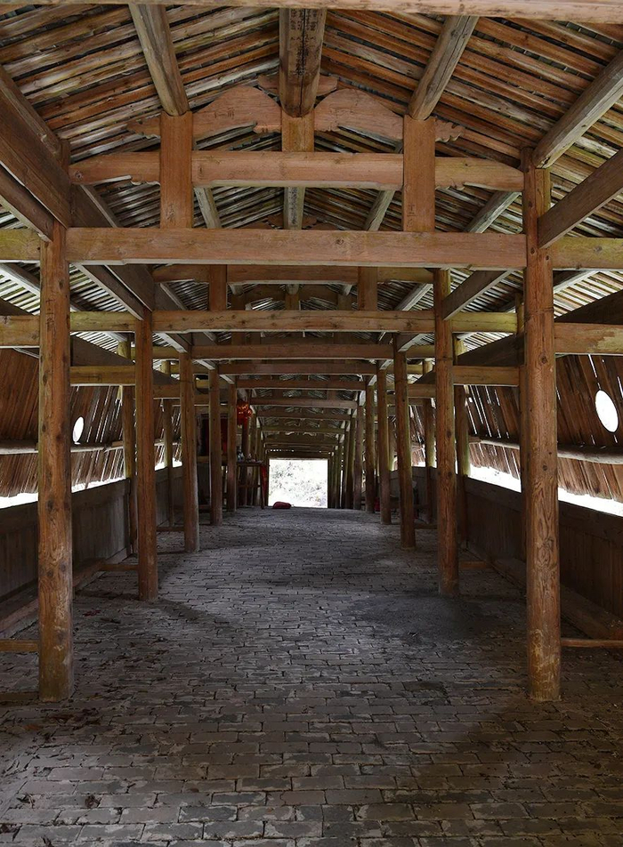刘宅桥的廊屋有两层,上层有神龛,下层为通道。