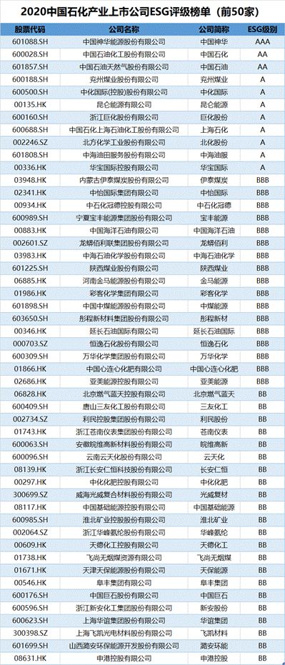 首次发布中国石油和化工行业上市公司ESG评级与行业榜单