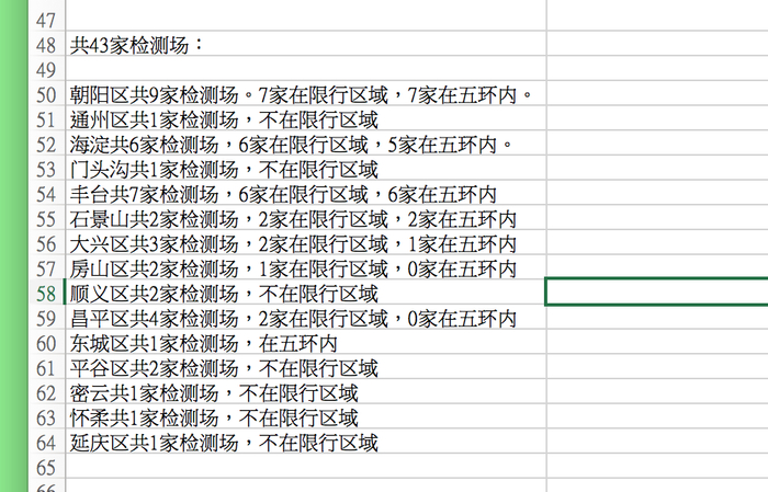 按照统计,除了延庆、密云、怀柔、平谷、顺义、通州检测场不在限行区内,其他区均有验车场在限行范围内,其中石景山区、海淀区“全军覆没”。