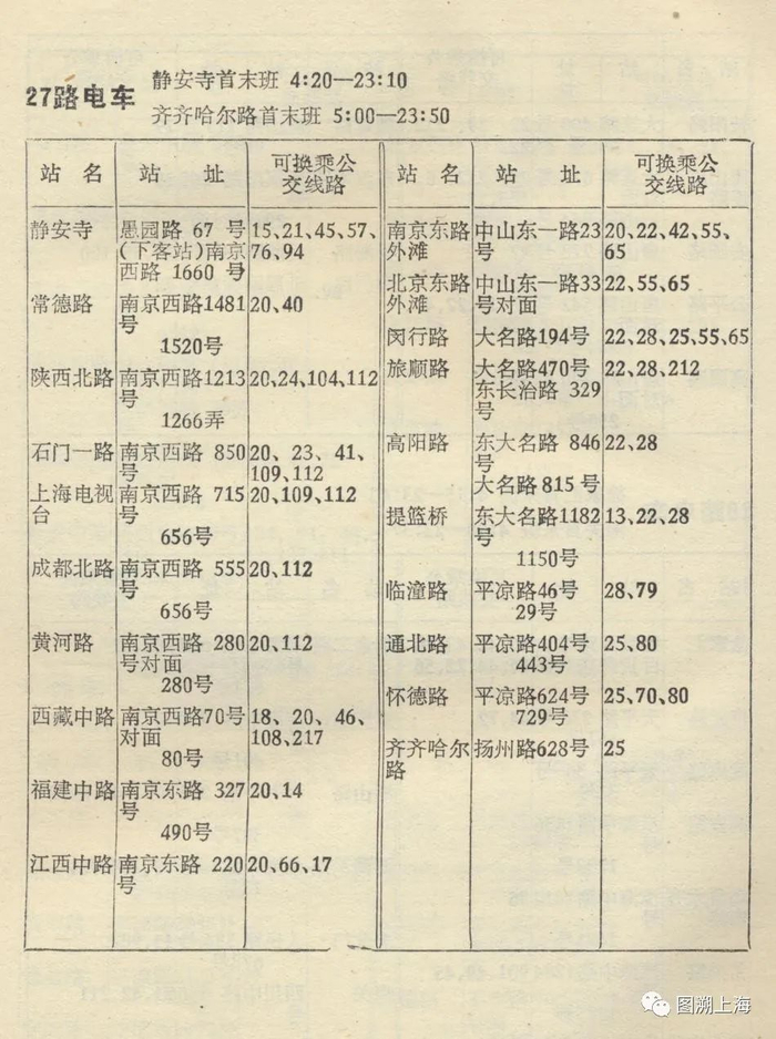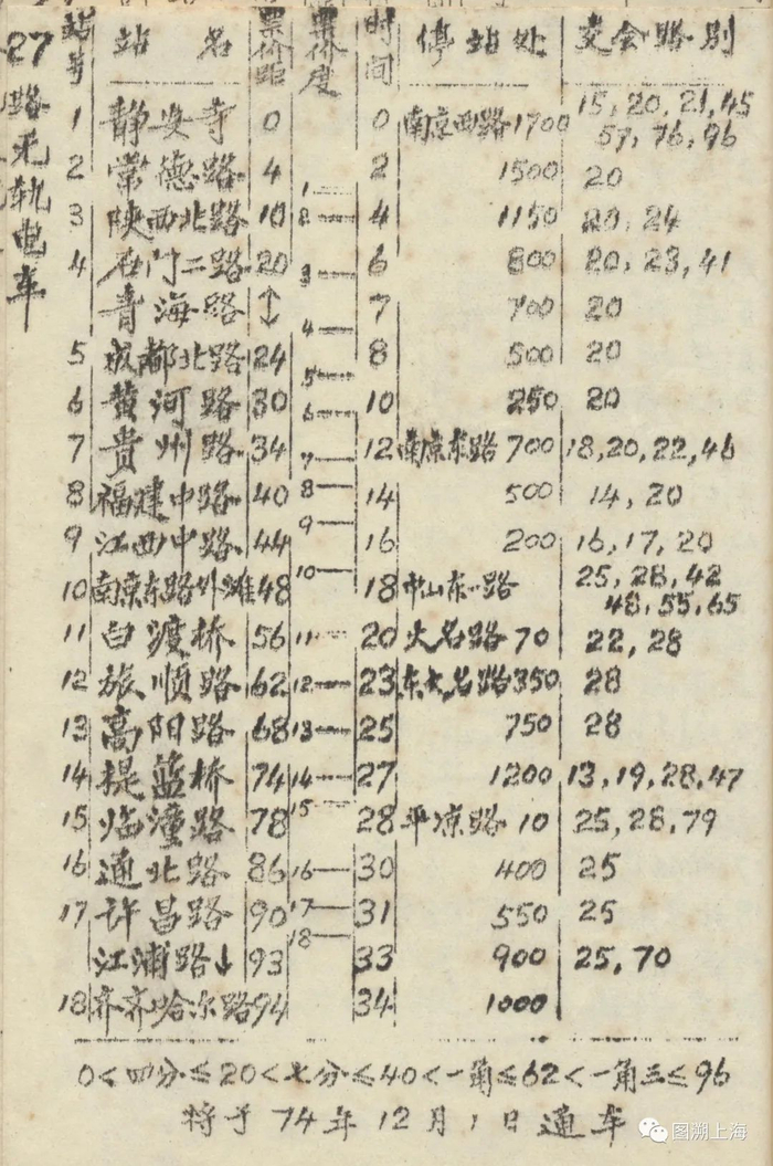 1974年公交手册:27路电车