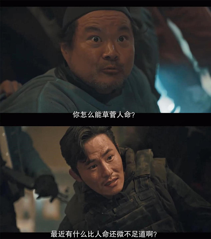以往相似题材的作品,在触及人性的时候,更多探讨的是人性之恶,比如《釜山行》中的金常务。《甜蜜家园》中,亦不乏人性的卑劣与自私,比如夺走军队武器的流氓闯进大厦后大开杀戒。面对草菅人命的痛斥,流氓的头头说,“最近有什么比人命还微不足道啊?”