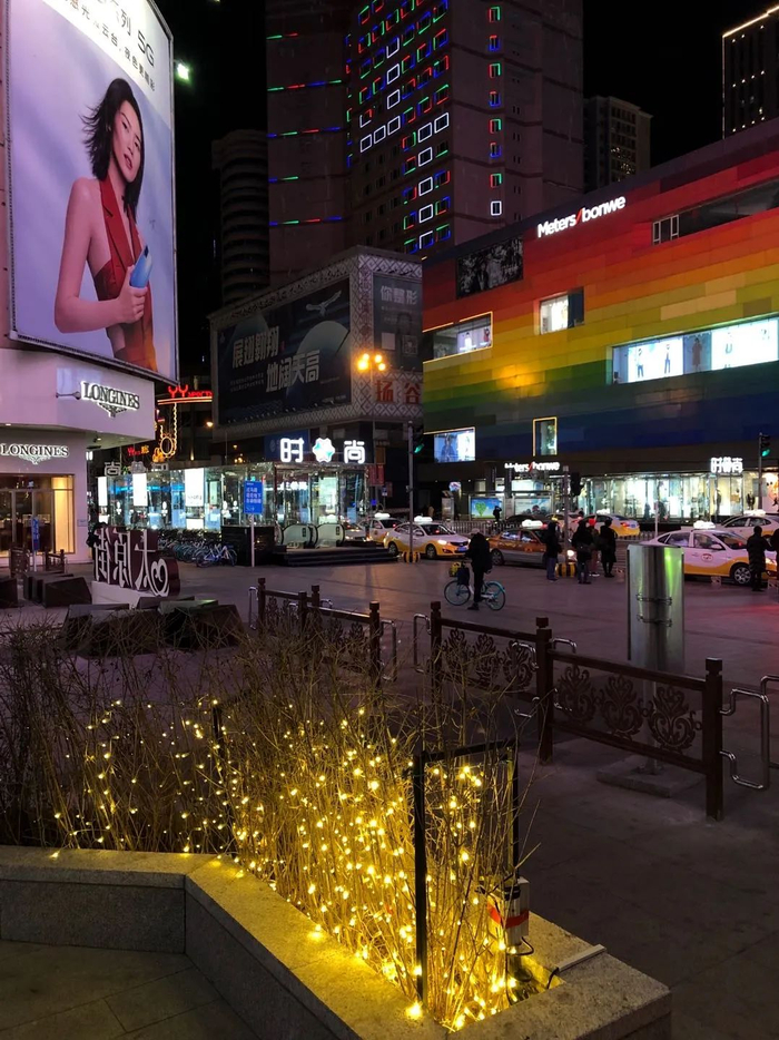 沈阳太原街附近的商场被装扮的五彩缤纷,而且用色都很大胆,常常让人有一种乱入的错觉,画风很像京都的那条中央主干道。