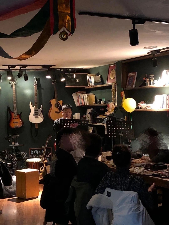 我点了杯京A坐在吧台,像是进入了一台时光机。不一会,歌手开始卖起了关子,说我会唱一首大家很熟悉的歌,大家猜猜是什么歌。旋律刚下,就有人大喊一声,老鼠爱大米。