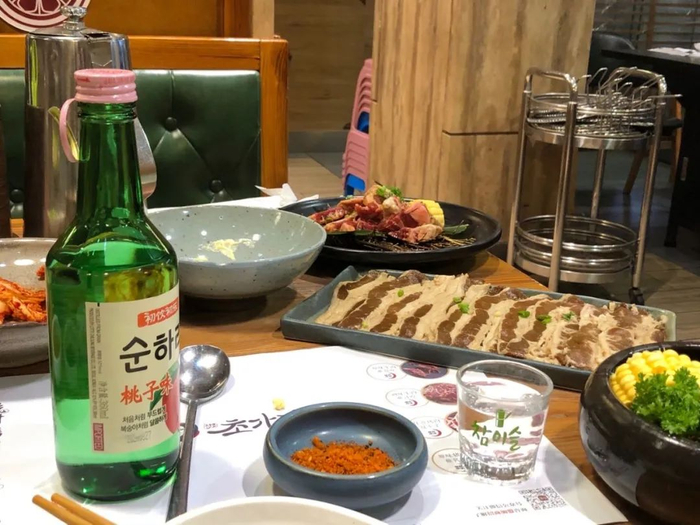 膝盖痛了好几天,但还是每天要喝点小酒。沈阳那种氛围很难让你不喝点。西塔的烤肉听说很有名,那必须去整点啊。到了一看,我都慌了,怎么跟在韩国一毛一样。牌匾除了中文,还有韩文。随便找了一家,品质真的惊艳到,一点也不输韩国。