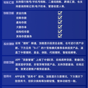 据2020半年报,中国银行坚持“移动优先”策略,持续迭代升级手机银行,目前已成为活跃客户最多的线上交易渠道:新增了年度账单、LPR转换、征信查询、E抵贷、银发专区等产品服务;优化了跨境汇款、投资理财、信用卡等重点功能;持续丰富手机银行非金融服务,重点聚焦电商购物、餐饮外卖、线上视频等场景。