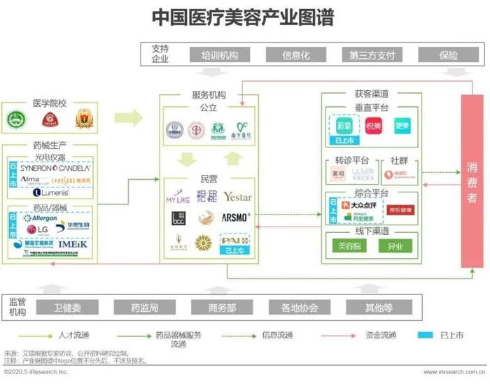 艾瑞数据显示,2019年中国具备医疗美容资质的机构约1.3万家中,但其中依然有超过2000家机构存在超范围经营现象;全国依然有超过8万家生活美业店铺非法开展医疗美容项目;2019年中国医美行业实际从业医师数量38343名,根据中整协统计非法从业者人数至少在10万以上。合法医美机构当中,非合规医师数量将近5000人;市面上流通的针剂正品率只有33.3%。