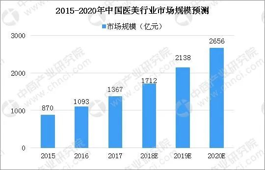 近几年,中国医疗美容市场规模持续增长。中商产业研究院数据显示,2017年中国医疗美容行业市场规模达1367亿元,预计2020年将突破2500亿元。