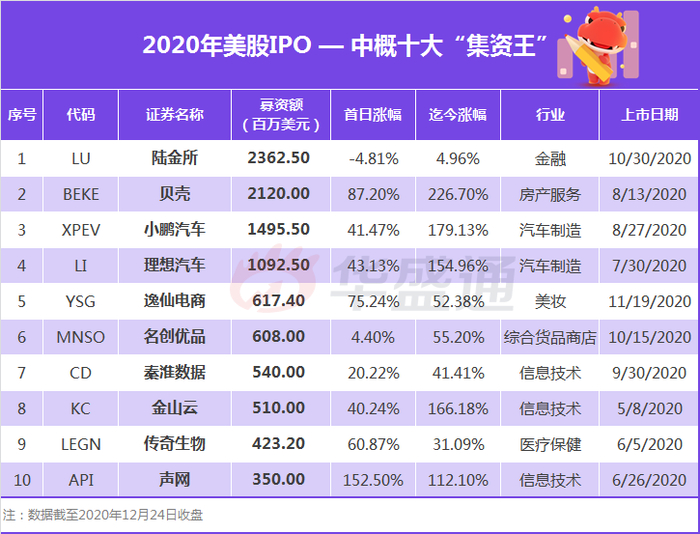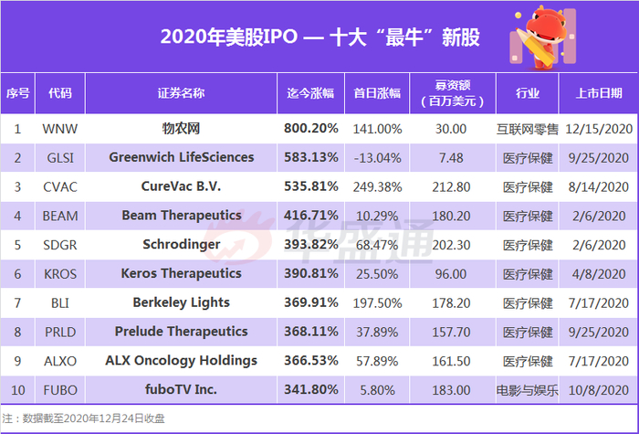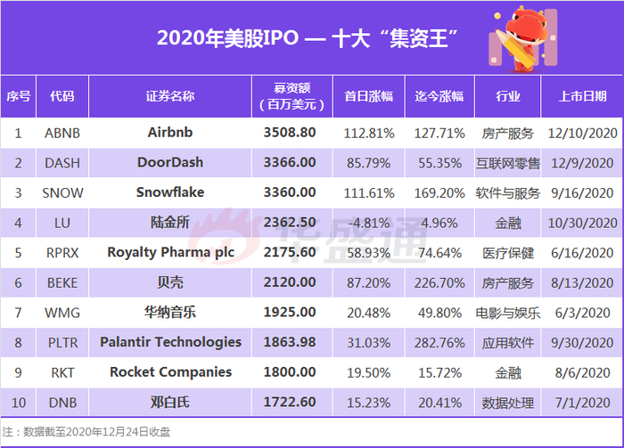 2020年美股IPO盘点:融资额创历史 首日平均涨幅超40%!