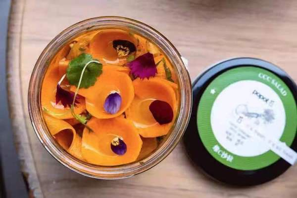 特别让人惊喜的是,虽然是以玻璃罐为盛器,但这不意味着菜品就放弃了法国人引以为傲的摆盘。事实上,每个端上桌的罐子,都漂亮得让人忍不住举起手机。Morgan说,在最初设计时,他就考虑到了社交媒体上的分享,因此格外注重出品的颜值。甚至颜值太高也有烦恼,见到客人拍得实在久了,他也会想要劝说,还是趁热先吃吧。