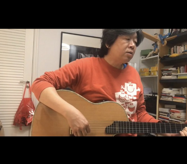 这是一次完全的即兴之作,没有慈善的目的,无组织,更无商业介入。唱歌的人们自由自在,双刀剁菜作节奏,开几句说唱,擦钵低吟,操合成器;抱吉他的最多,弹钢琴、贝司,玩各种乐器的都有;有崽的带崽入镜,杨嘉松的儿子福仔替爹按品,陶醉闭目。