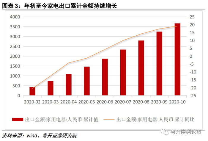 根据海关总署数据,截至2020年10月,家电行业出口累计金额达3670亿元,同比增长19.1%。对于海外市场,疫情给生产企业带来了更多不确定性,很多国家疫情并未得到有效控制,使生产端面临停工或生产效率降低的困境。
