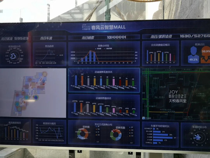 在大兴大悦春风里,通过5G 、大数据、物联网等技术,构建了一个数字孪生的春风里,打通商户端、客户端、营销端的数据,以科技创新赋能运营服务。