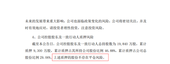 12月29日济民制药公告称,经公司自查并向控股股东及实际控制人核实,不存在应披露而未披露的重大事项。截至本公告日,公司控股股东及一致行动人总持股数为 1.984亿股,累计质押 9300万股,累计质押占其所持公司股份比例46.88%,累计质押占公司总股份比例 29.06%。公司表示,上述质押的股份不存在平仓风险。