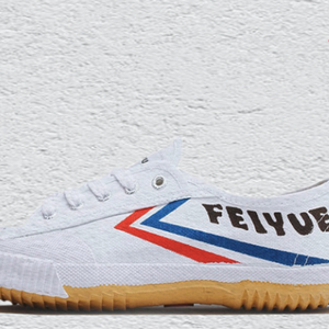白帆布鞋面、黄色硫化橡胶底、红蓝双勾logo及带有上世纪色彩的FEIYUE二字拼音,组成了经典飞跃鞋的全部元素。这双国产鞋近几年摆脱了“低端”“老土”的标签,和另一个国潮品牌“回力”一起,切走了帆布鞋领头者Converse(匡威)、Vans(范斯)的部分市场。
