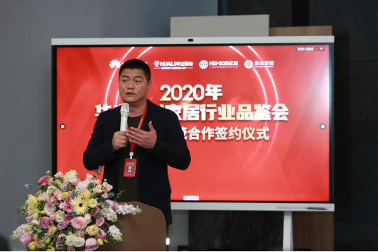广东省衣柜行业协会会长&科凡董事长—林涛代表广东定制家居行业感谢华为、华立和诗尼曼,称他们是定制家居行业科技化、数字化的先行者。并表示2021年协会要组织所有会员来进行专题探讨,在华为和华立的协助下,推动家居行业的科技化、数字化,实现真正的定制家居。
