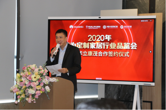 2020年12月29日,华为定制家居行业品鉴会暨华立康茂合作签约仪式在松山湖汇富中心九楼举行。华为政企业务中国区副总裁杨萍,广东省衣柜行业协会会长&科凡董事长林涛,诗尼曼执行总裁黄伟国,华立股份董事长谭洪汝,虹湾供应链运营总监纪俊涛,华立康茂总经理蒋越等领导,以及近百名定制家居行业代表出席本次活动。