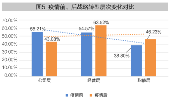 这一结果说明了无论是疫情前还是疫情后,中国企业总体上战略转型的前瞻性认知程度均比较低。