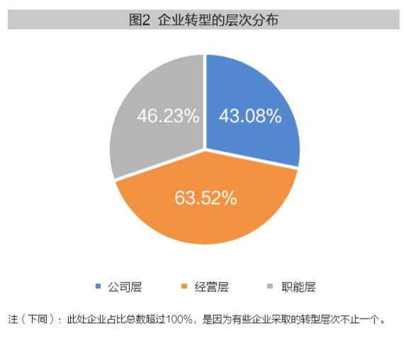 优秀的企业由危机造就,它是能够在经历危机之后继续成长的。我们的一项研究调查结果表明,受访企业中有54.92%的企业在疫情发生后,已在公司层、业务层与职能层等众多经营活动领域正在开展积极的转型。
