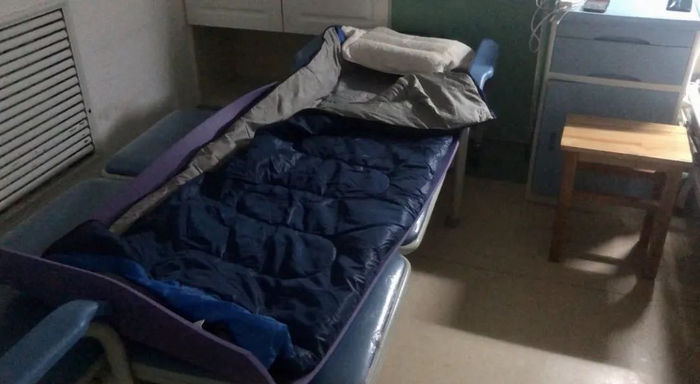 我在医院的陪床装备,以前徒步旅行用过的睡袋和充气枕,都派上了用场。