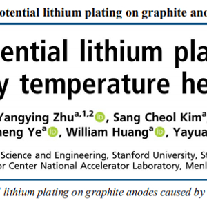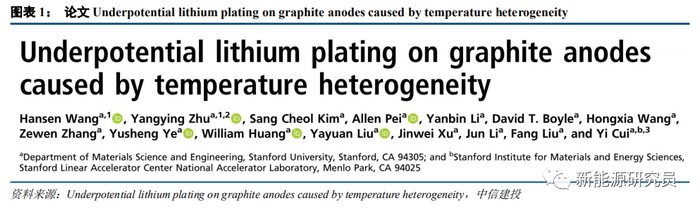 如我们所知,负极析锂是锂电池安全隐患的重要肇因。研究者Hansen Wang、Yangying Zhu、Yi Cui(斯坦福大学著名教授崔屹)等分析了温度分布对负极析锂状况的影响,研究成果Underpotential lithium plating on graphite anodes caused by temperature heterogeneity 2020年发表在Proceedings of the National Academy of Sciences of the United States of America上