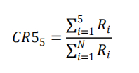 该指标计算简便,能够反应该行业企业的相对规模和市场结构等情况,CRn越大,该行业的行业集中度越高,通常CR5和CR10使用的频率较高。所有的统计指标都不是完美的,CRn指数也存在着无法反映龙头企业之外企业和市场的缺点。同时,因为有些企业的数据并不公开或者市场上小规模企业众多,相关数据难以统计,所以计算难免出现一些误差。