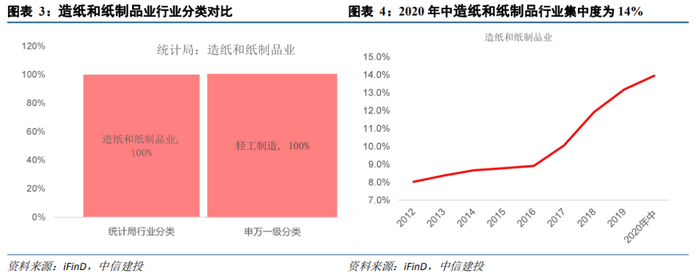 我们对比统计局行业分类(2017年)和申万一级行业分类,根据申万一级行业的标准对其进行细分,统计局行业分类中的造纸和纸制品业属于申万一级行业中的轻工制造业。