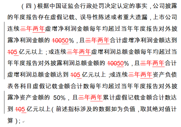 将造假年限由3年减少为2年;将造假比例由100%降至50%;造假金额合计数由10亿元降为5亿元;同时新增营业收入指标。