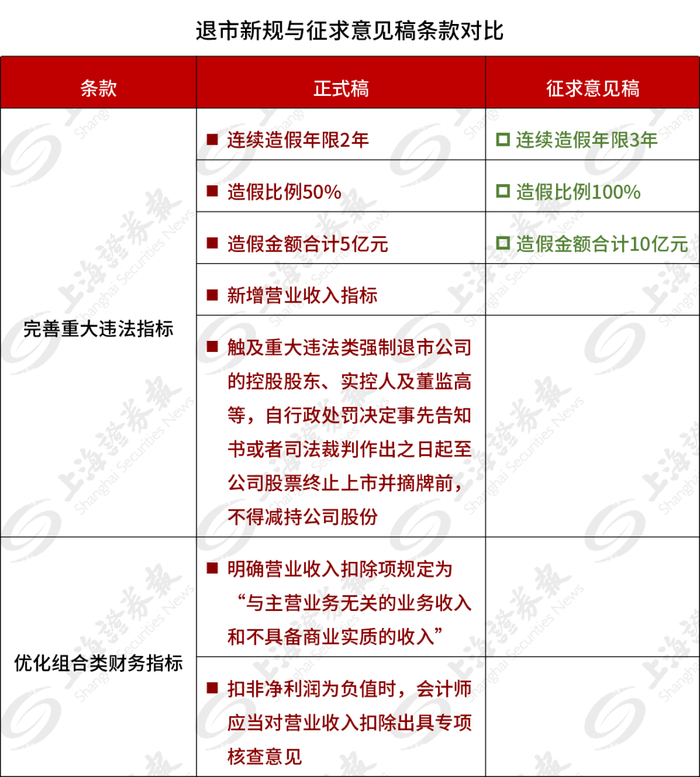 退市新规与征求意见稿条款对比: