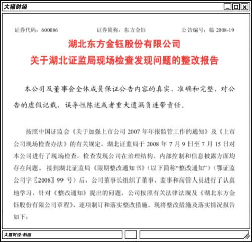因为这个,湖北证监局还专门对东方金钰做了个处罚,说公司实际控制人的行为缺乏约束,董事会未能充分发挥作用,责令公司改正。